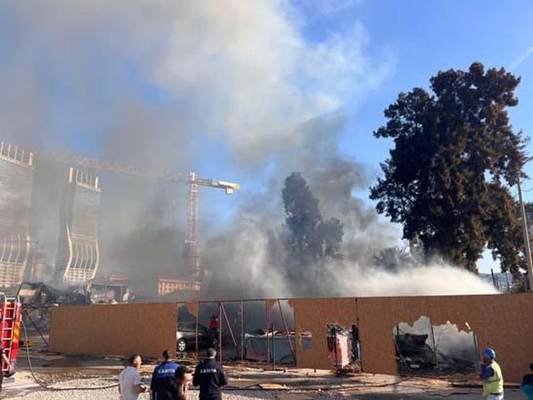 İzmir’in Bayraklı ilçesinde bir inşaat firmasına ait şantiyede yangın çıktı. Kara dumanların yükseldiği yangının söndürülmesi için itfaiye yoğun çalışma sergiliyor.