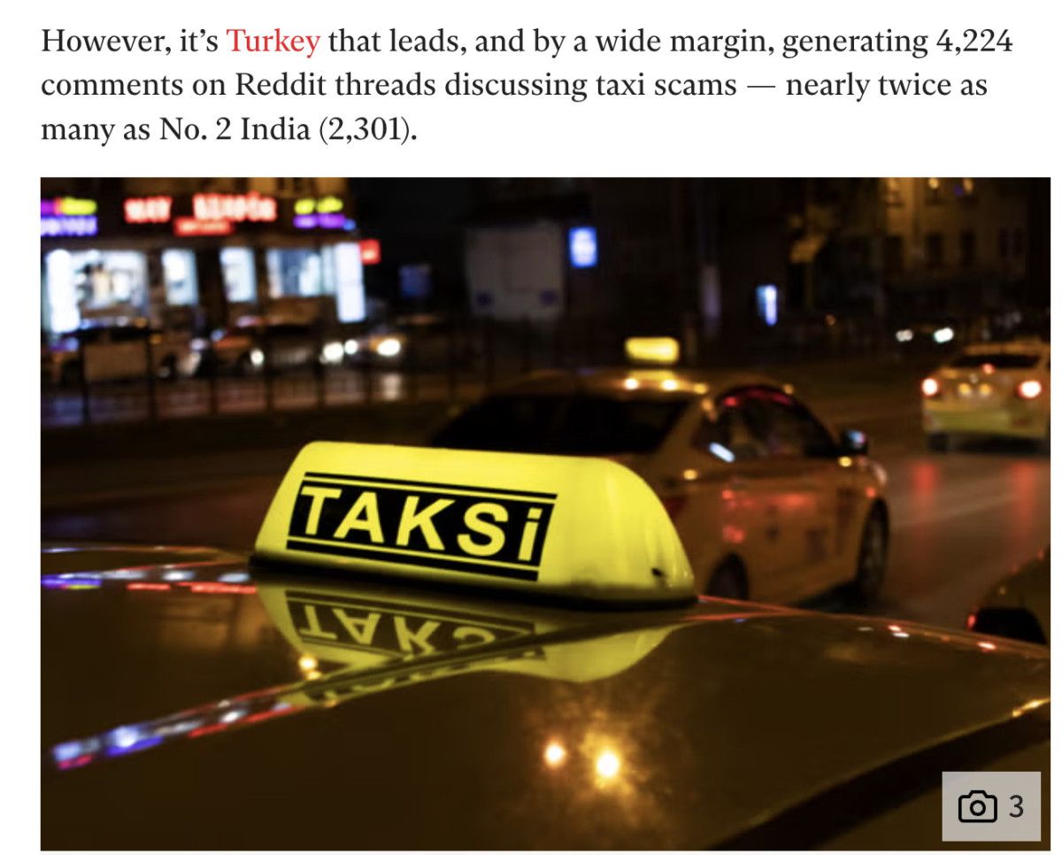 Reddit’te yer alan 450 gönderi ve 30 binden fazla yorum üzerinden yapılan inceleme, taksi dolandırıcılıklarının en çok konuşulduğu ülkelerin başında Türkiye’nin olduğunu gösterdi.